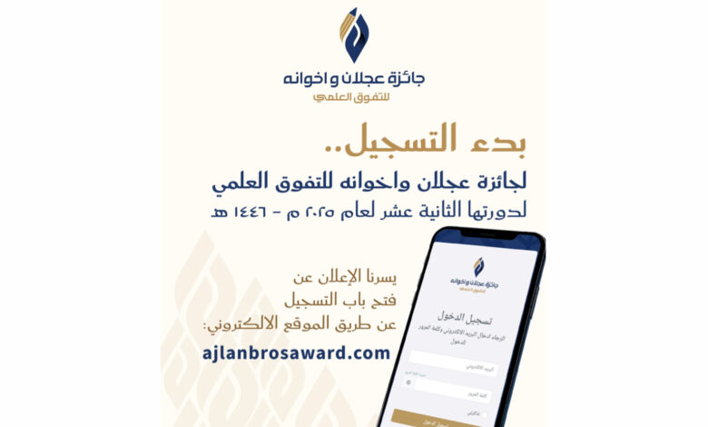 الإعلان عن بدء التسجيل في جائزة عجلان وإخوانه للتفوق العلمي في دورتها الثانية عشرة لعام 2025م – 1446هـ