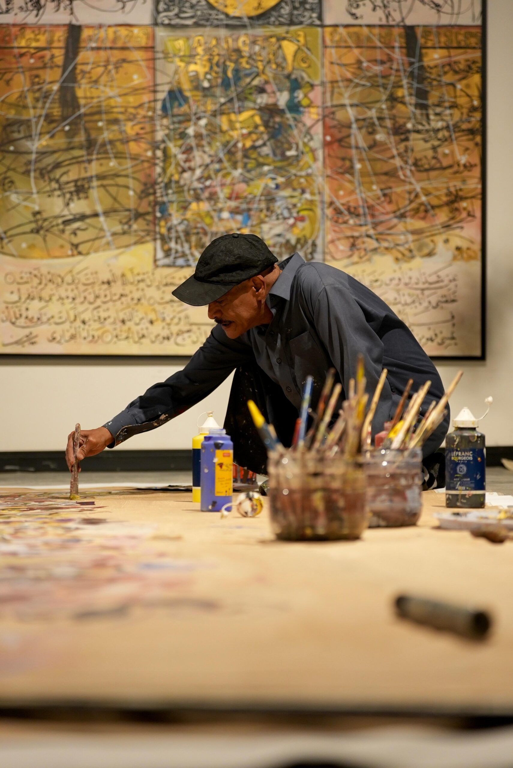 بدأت برغبة في تحويل الخط العربي من مجرد نص مكتوب إلى كيان بصري حر يتنفس في مساحة مفتوحة، ويكون همزة وصل بين الماضي وحداثة المكان.